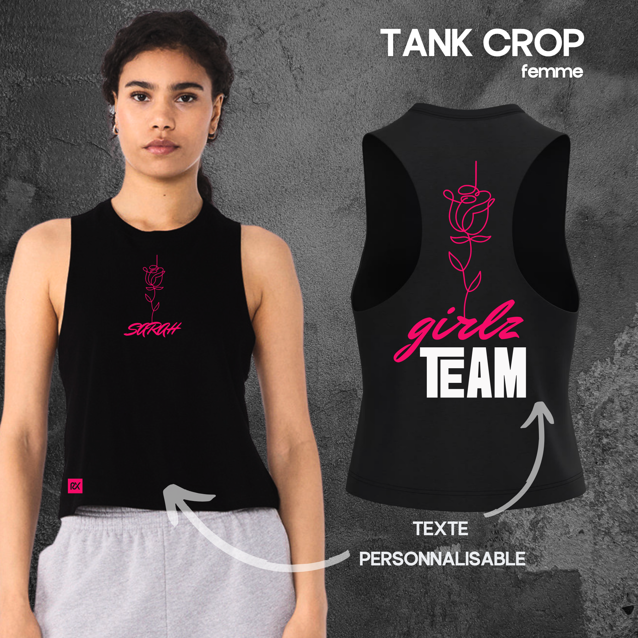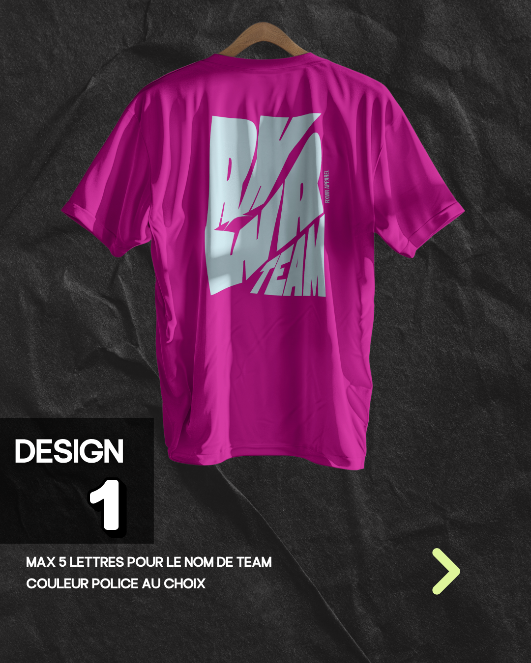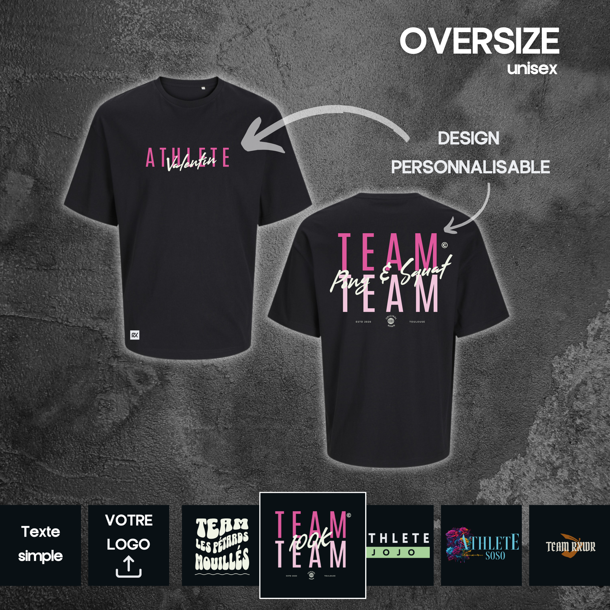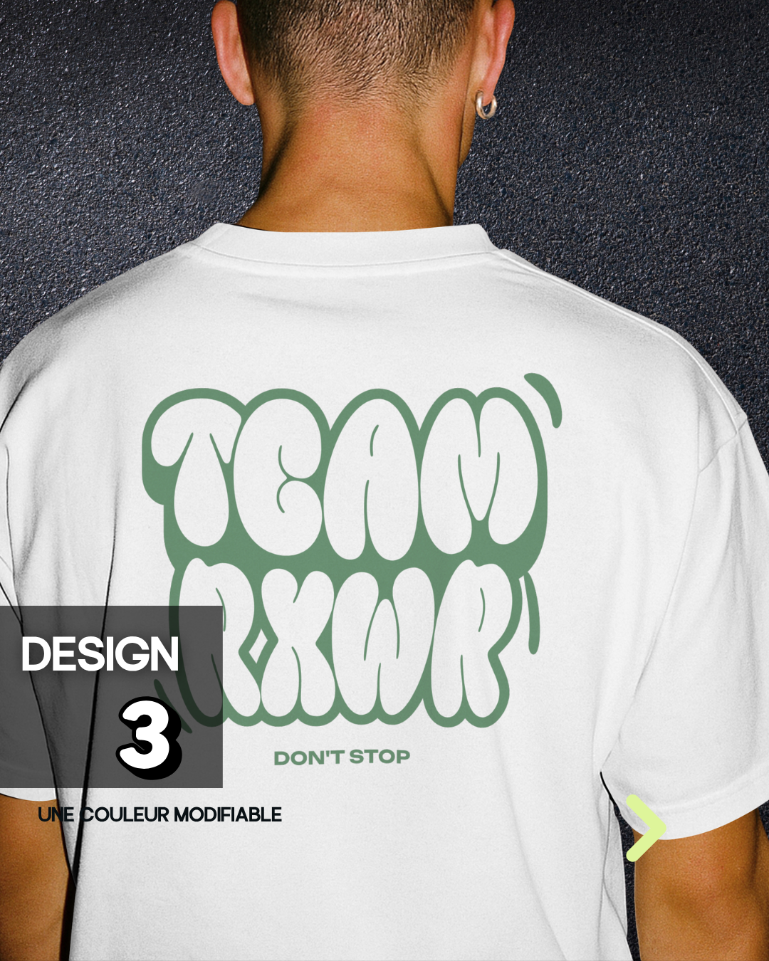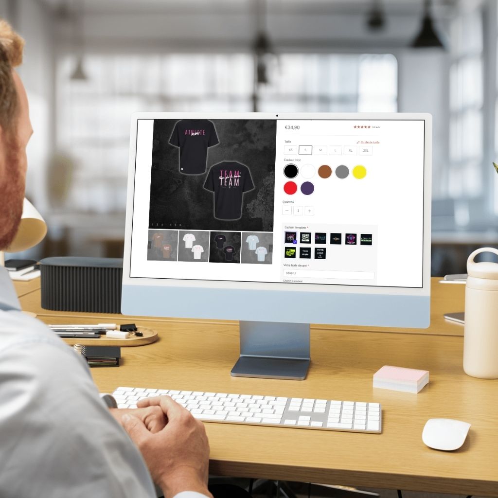 Commencez par choisir le produit à personnaliser (tshirt, oversize, crop etc.) puis sélectionnez le design et les informations pour avoir un rendu en direct.