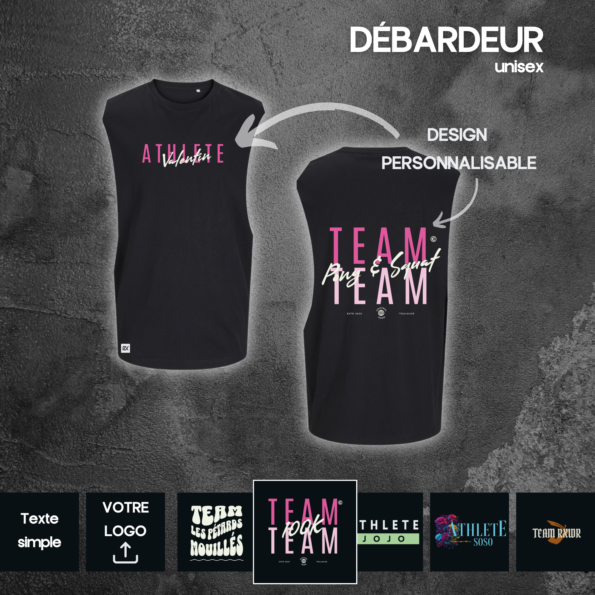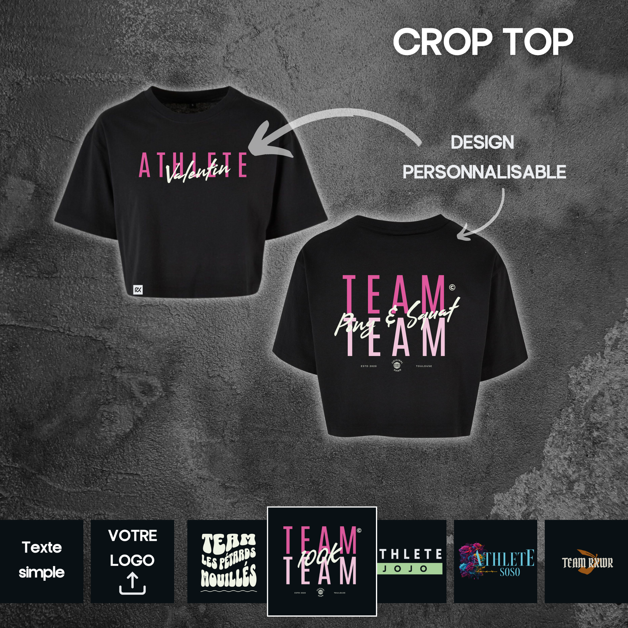 Tous ces designs sont personnalisables sur notre outil en ligne.