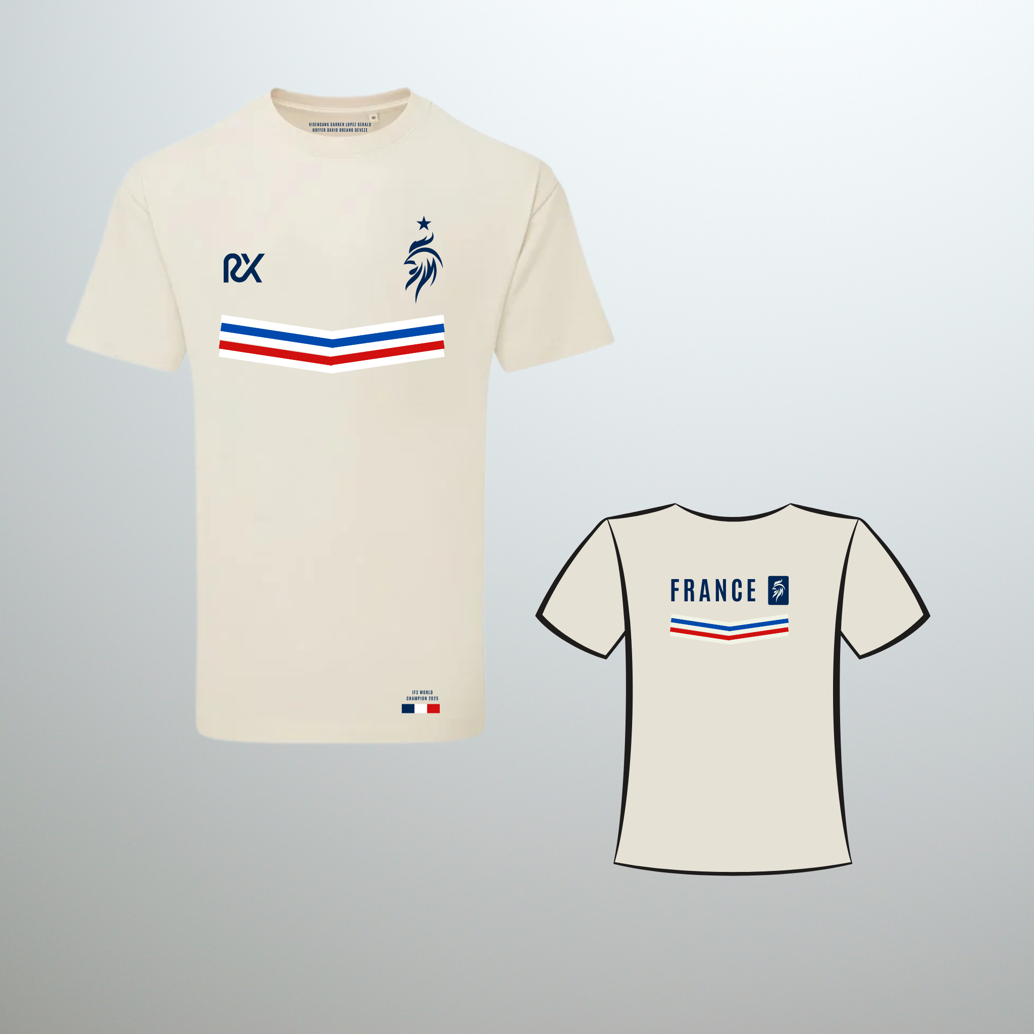 Avec son design dynamique inspiré de la performance et de la détermination des athlètes français, ce t-shirt met à l’honneur leur titre de Champions du Monde. Son tissu respirant et sa coupe moderne en font un vêtement idéal aussi bien pour l’entraînement que pour le quotidien.
